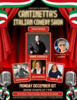 Italian American Comedy Dinner Show Starring Vinnie FavoritoMonday December 01, 2025 7:00 PM - December 01, 2025 9:00 PM Cantinetta Las Vegas, NV An intimate evening of authentic Italian cuisine, fine wine, and elite stand-up comedy in one of Vegass most charming dining rooms. |